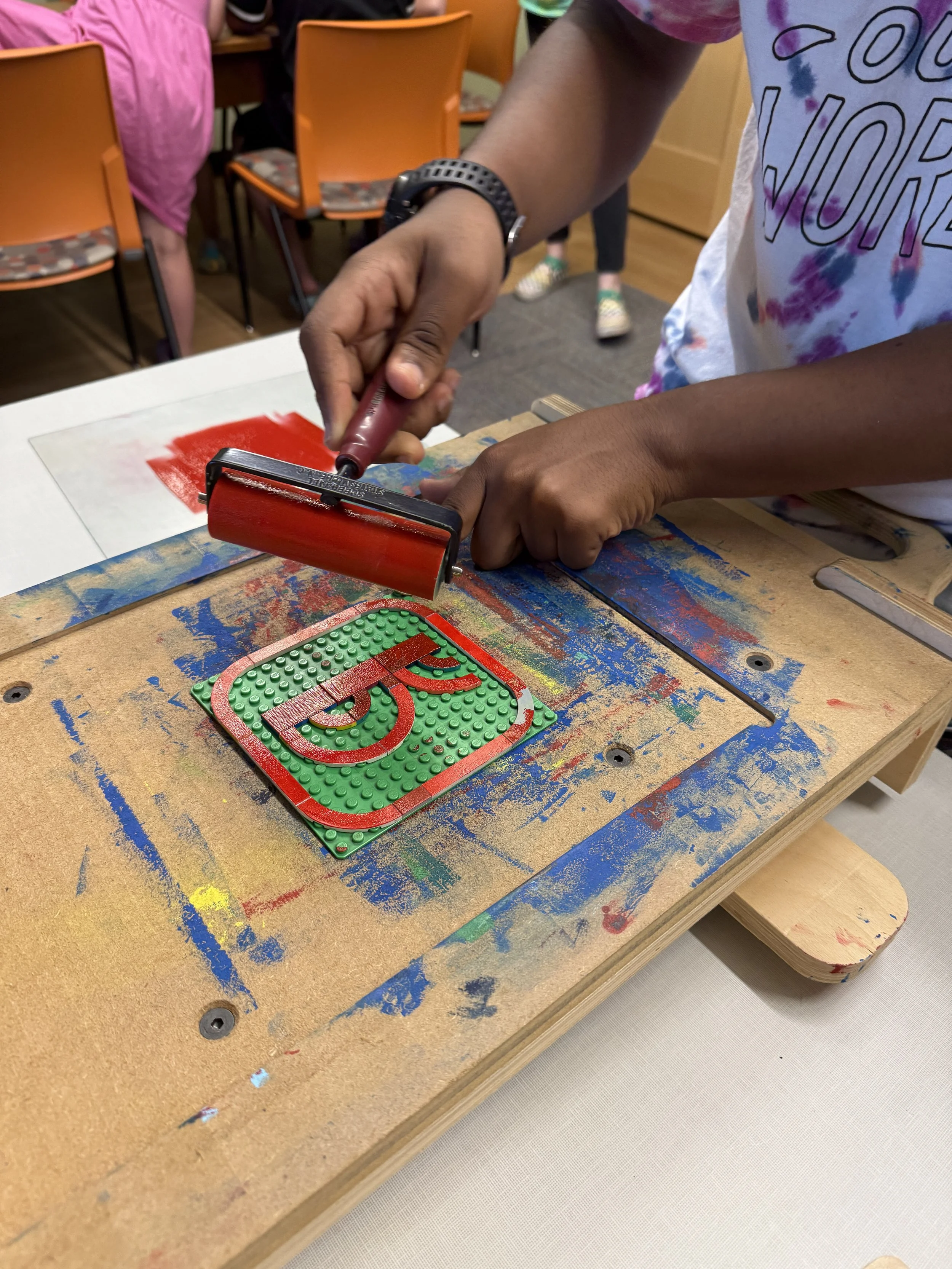 Our programs nurture the next generation of artists by developing skills in creative problem solving, artistic expression, and design thinking. Our emphasis is on two and three dimensional thinking using accessible tools like printing presses, LEGO®, wood carving, and drawing.